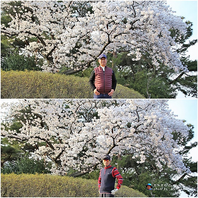 카트기에서 내려 아름답게 피어난 벚꽃의 아름다운 풍경을 바라보면서 미소를 지으며 감탄사를토해내기도 한다.
