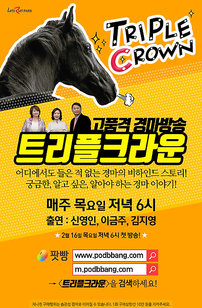 새로운 경마이야기 ‘트리플크라운’이 방송됩니다.