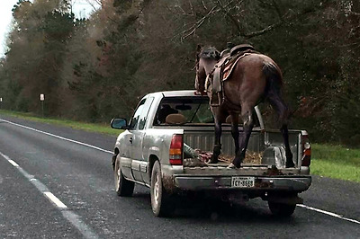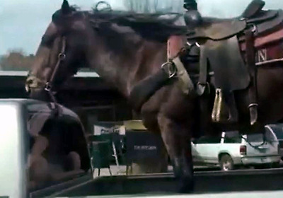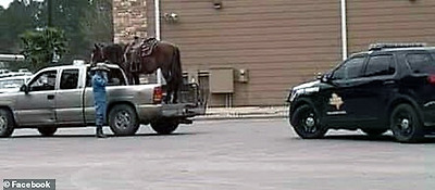 경찰국에 ‘고속도로에 1톤급 픽업트럭에 말을 운반하고