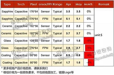Synaptics 광학식 10~12$, Qualcomm 초음파식 12~15$, 중국 Silead 광학식: 8~9$는 이미 전해드렸는데