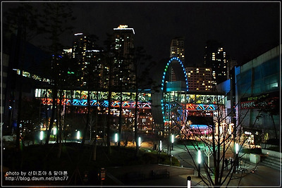 메타폴리스 a~b동을 연결하는 구름다리 찬란한 불빛..