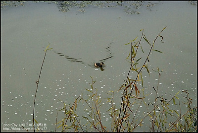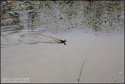 수면위에서 어린 물닭이..엄마 찾아 삼십리~ㅎㅎ~