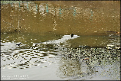물닭 부부가 어린새끼들을 찾이 헤메고 있네요.^^
