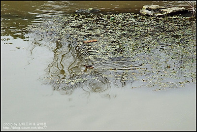 새끼들을 불러 모으며..수초근처로 유도하고 있네요.