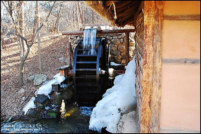 아직 녹지 않은 얼음곁으로 돌아가는 물레방아..봄을 재촉하며..돌고 돌아 갑니다.