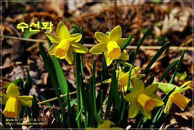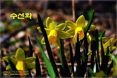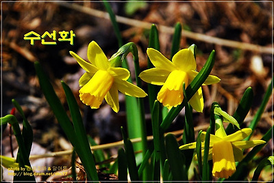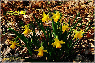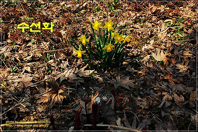 차가운 봄기운을 달래주는 어린 새싹들의 발란속에 아름답게 핀 수선화..
