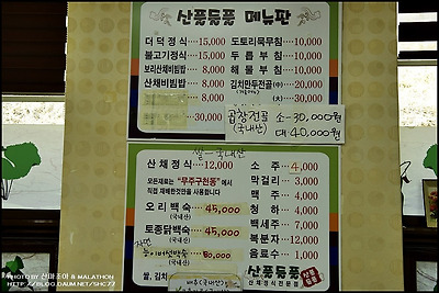 산풀들풀 메뉴판을 참고 하시기 바랍니다.