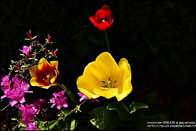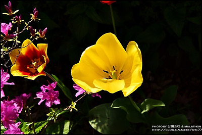 진달래과 영산홍..길가나 공원의 숲속에서 어울어져 예쁘게 핀 노랑 빨강..튤립!~~