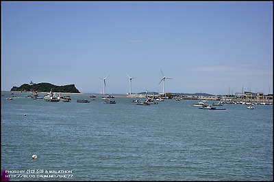 누에섬과 풍력발전기 힘차게 돌아 가고 있지요..그 곳은 경기도 안산시로 편입되어 있지요.