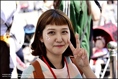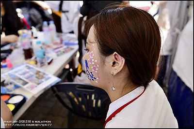 볼과 이마에 예쁘게 페인팅한 꽃그림과 함께 v자로 화이팅..포즈를 취해주네요.^^