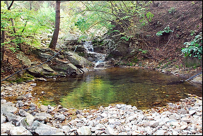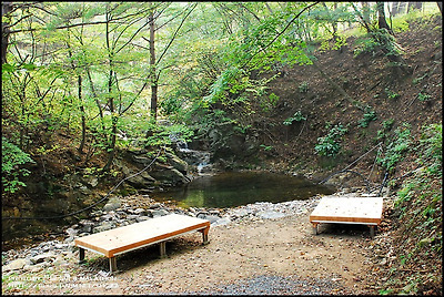 강원도 홍천군 매봉산 북쪽 기슭 해발 700m 분지 낙엽송 사이로 흐르는 계곡물과
