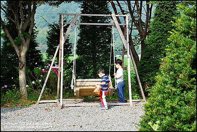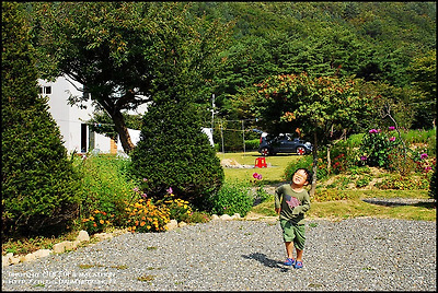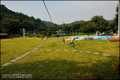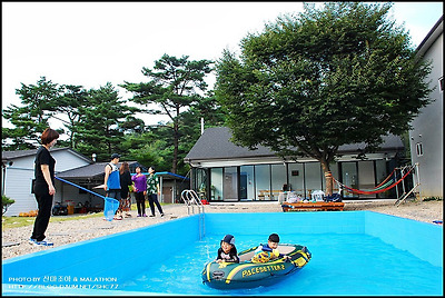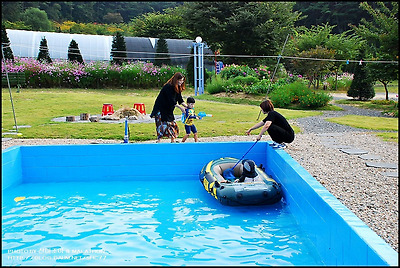 강원도 홍천..무네미 농장 수영장 앞에서 뛰어 놀고 있는 손자들..