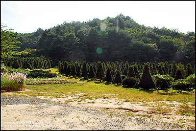 강원도 홍천군 무네미 농장 앞뜰에는 주목을 키우는 조경 단지가 있습니다.
