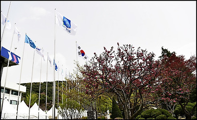 경기도의회 건물 뒷편..벚꽃은 씨방만 앙상하게 남아 있고..