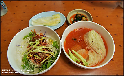 함께 시킨 비빔국수 넘 매워 아내는 반도 못먹구 지불한 돈이 아깝다고 하더군요.