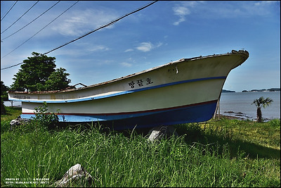 전라남도가 선정한 경치좋은 길 옅에 덩그러니 앉아있는 땅끝호 고기잡이 작은 어선?~