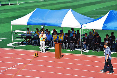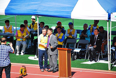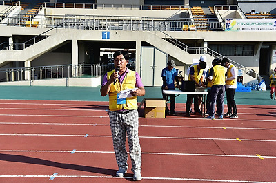 제28회 경기노회 남선교회 연합회 체육대회 종료를 멘트 하고 있는 대회장 아나운서?..