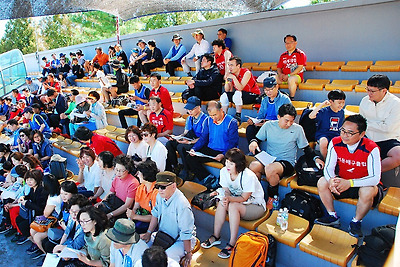 대회 참여 선수들이 서둔교회 본부석..그늘막에서 대회 진행 순서를 차분히 보고 읽고 있습니다.