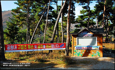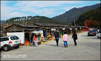 구절초 축제때 현지 주민들이 특산믈을 판매하고 관광객들에 음식을 판매하는 장소 같아 보입니다.