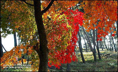 고운 자태를 뽐내며 빨갛게 물든 단풍나무 숲에서..