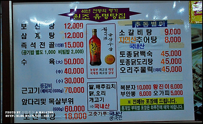 ☆전북 익산시 소재 보신탕,삼계탕의 名家 원조 대장촌 유명탕집 메뉴판..참고하시기 바랍니다.^^