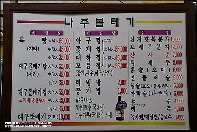 메뉴판을 참조하시고..대구지리탕을 맛있게 드시고 사들고 가는 두부과자 잊지 마세요.(국내산)