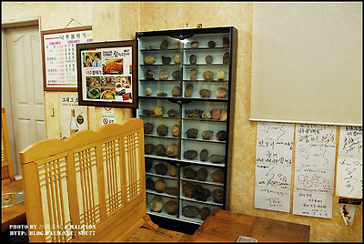 깔끔 명료하게 장식된 수석들..그리고 이곳을 찾은 식도락가들의 남긴 싸인..