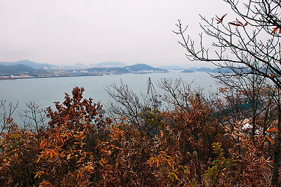 목포시 삼학도의 대 삼학산 정상입니다.오르면 좌측으로 영산호 하구언이요..중앙으로 바닷 길 건너 대불산단..