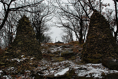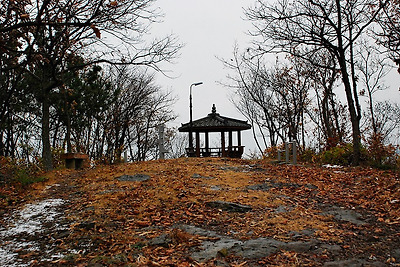 좌우로 쌓아 올린 돌탑사이를 지나면 정자가 보이는 정상에 도착을 합니다.