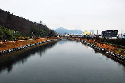 그런 저런 생각을 하면서 삼학산 주변 강변 수로길을 걷고 있는대 나이 지긋한 아줌시 한 분이 옅으로 다가오네요..