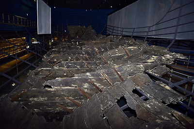 가장 눈에 띄는 전시물은 뭐니뭐니해도 짧게는 수년간,길게는 십수년간 약품으로 경화 처리해 복원된 2척의 배 였습니다.