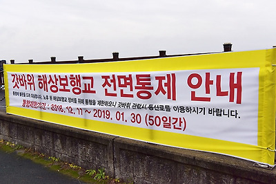 갓바위 해상보행교각을 현재 공사중,,전면 통행을 금지하고 있습니다.