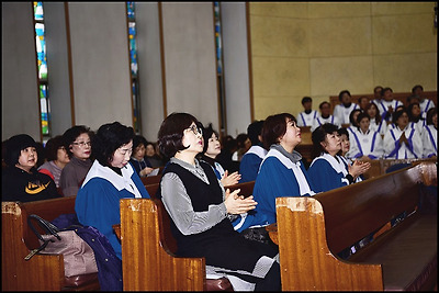1,3교구 특송후..에이레네중창단 봉헌송을 경청하고있는 성도님들..