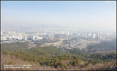 정상에 오르면 좌,로 수원시와 화성시가 전망되는 나즈막 하고 아름다운 산..칠보산..정상에서..