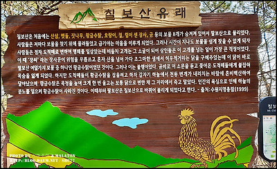 8가지 보물이 있어 팔보산으로 불리다가 황금수닭이 없어져 칠보산으로 되었다는 전설.~