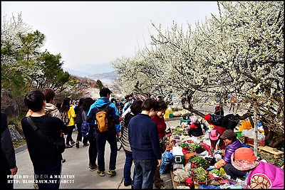 입구에서부터 약 1시간 정도 걸어 행사장 도착 기진..맥진?..하얀 매화꽃이 노랗게 보이더군요..넘 힘이 들어서 말 입니다.