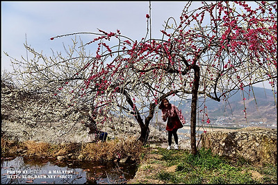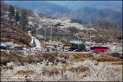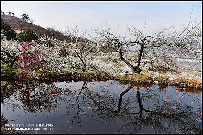 주차난으로 여기서 부터 도보로 걸어서 섬진강변의 고은 매화꽃을 담아 내며 촬영한..