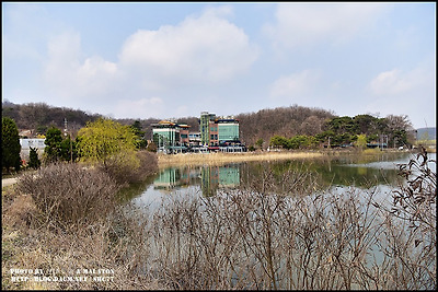갈대밭 호수공원사이로 보이는 좌측에는 YBM연수원이 자리하고 있으며
