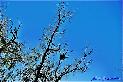 거센 찬바람으로 새끼 까치는 모두 둥지로 들오가고 없다.