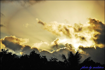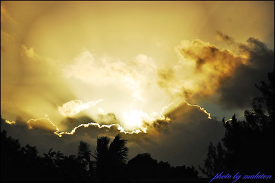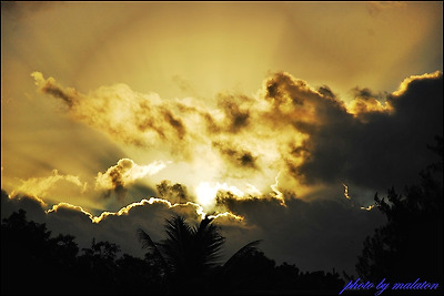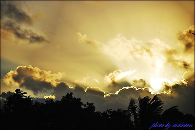새벽에 비가 내린후 구름사이로 해가 뜨기 시작한다.