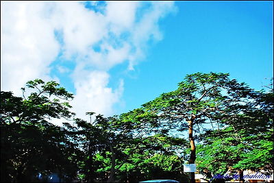청명한 하늘아래 열대림 나무이름은 모름...