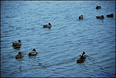 한가로이 먹이감을 사냥하는 청둥오리 무리들...