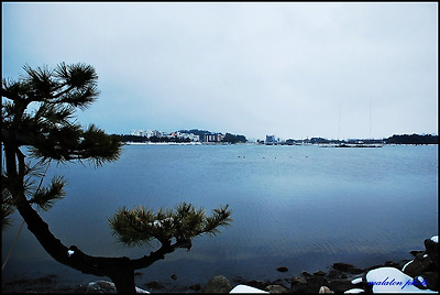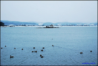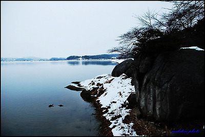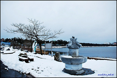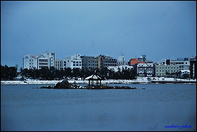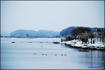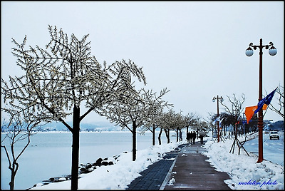 경포호수 주변은 새하얀 눈으로 덮혀있다.↑