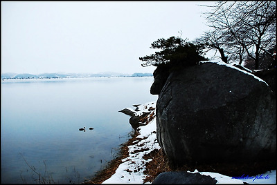 경포관광마사협회 증 괴암석이 경포호수 중간에 설치되여있다.↑