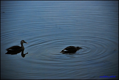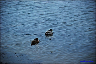 경포호수가에서 물놀이를 즐기는 청둥오리 부부..