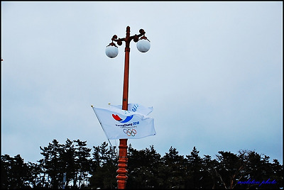 강원평창 2018년 동계얼림픽 유치 오륜기가 가는 곳곳마다 꼿혀있다..