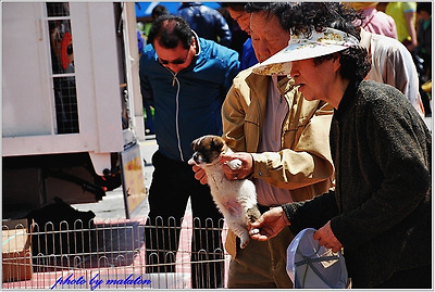 예쁜 강아지들을 사려고 흥정하는 고객?들..