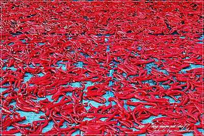 100%태양초 고추가루로 변신하기 위하여 건조.