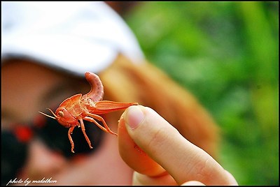 진분홍색 메뚜기도 잡아 관찰하면서..