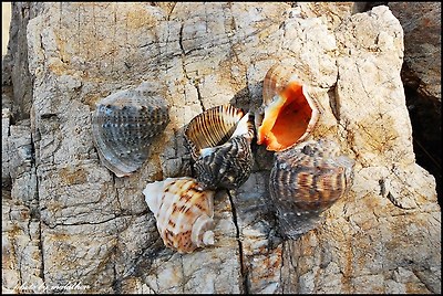 바위에 붙어 기생하는 조개따위 껍질을 촬영하셨네요..